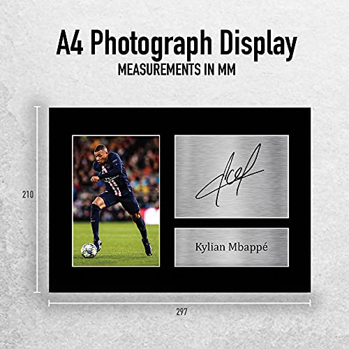 Professioneel gemaakt in onze studio, deze A4 (297x210mm) Kylian Mbappe scherm wordt geleverd met een hoge kwaliteit beeld van Mbappe naast een gedrukt exemplaar van zijn handtekening handtekening. Gemonteerd in een mat zwart met een zuur-vrij display board, het is perfect afgewerkt met de naam Mbappe in een zilveren, gedrukt plaque. Let op: deze prent komt niet ingelijst. Maakt de ideale kerst / Verjaardagscadeau voor fans van alle leeftijden, en het beste van alles, het zal zeker niet breken de bank!.