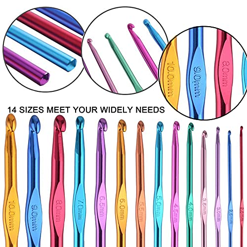 Specificaties: XUBX 14 stuks Haaknaalden Set, Mix Maten 2.0-10mm Geavanceerd haken, Multicolor Aluminium Haaknaald Set, Weave Garen…