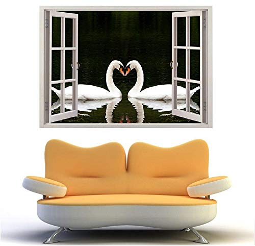 3D Effect Venster View Muurstickers Paar Zwanen Vinyl Decal Decor Home Decor Chilren Kamer Decoratie Muur Art-60x90cm_