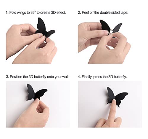 Luxbon 100 Stuks 3D Vlinders Muurstickers Muurtattoo Baby Kinderkamer Decoratie 7.8×5.1cm Zwart