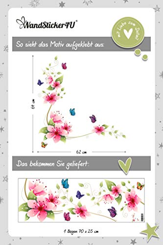 WandSticker4U® – Muurstickers bloemen ranke romantische roze/rood I muurafbeelding: 62 x 64 cm I muurtattoo bloemen…