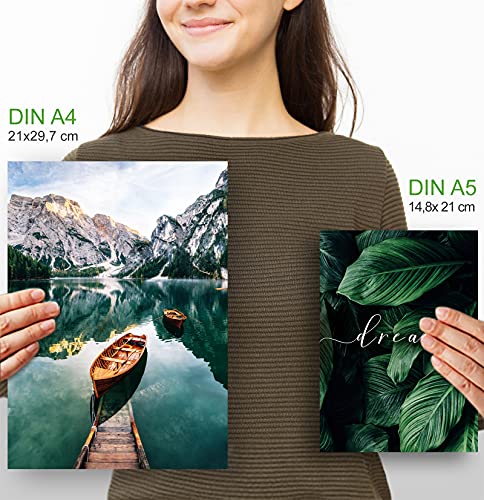 Premium kwaliteit: hoogwaardige kwaliteitsdruk op 300 g/m² premium papier met zijdeachtig mat oppervlak, set van 6 posters (zonder fotolijst) 4 x DIN A4 en 2 x DIN A5 – ca. 21 x 30 en 21 x 14,80 cm. Ideale grootte voor conventionele frameformaten. De kunstdrukken worden met stevige verpakking verzonden. Zowel in de fotolijst, als met pinnaalden komt het aan de muur perfect tot zijn recht.