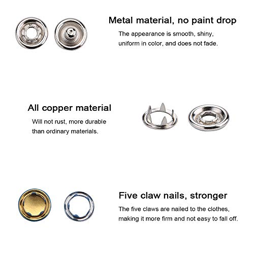 Breed gebruik reparatie of vervangen van gebroken sluitingen voor jassen, het toevoegen van functionele drukknopen op T-shirts, jeans, jassen, tassen en kunsthandwerk. Deze set maakt je bij DIY veel plezier!