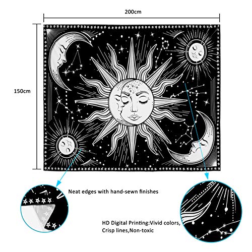 Specificaties: INTDORM Zon en Maan Wandtapijt Muur Opknoping Zwart-Wit Tapijt Constellatie Tapijt Astrologie Tapijt Meditatie Kamer…