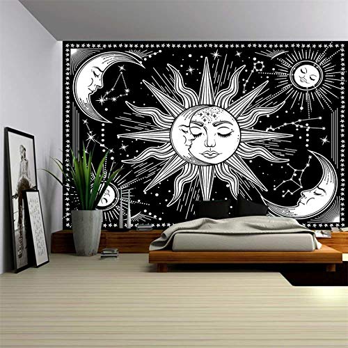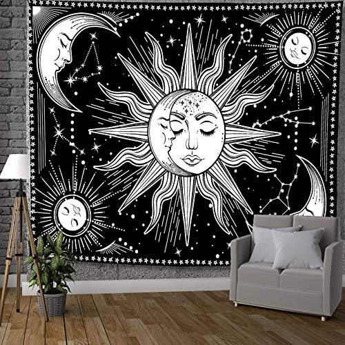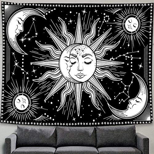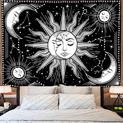 INTDORM Zon en Maan Wandtapijt Muur Opknoping Zwart-Wit Tapijt Constellatie Tapijt Astrologie Tapijt Meditatie Kamer…